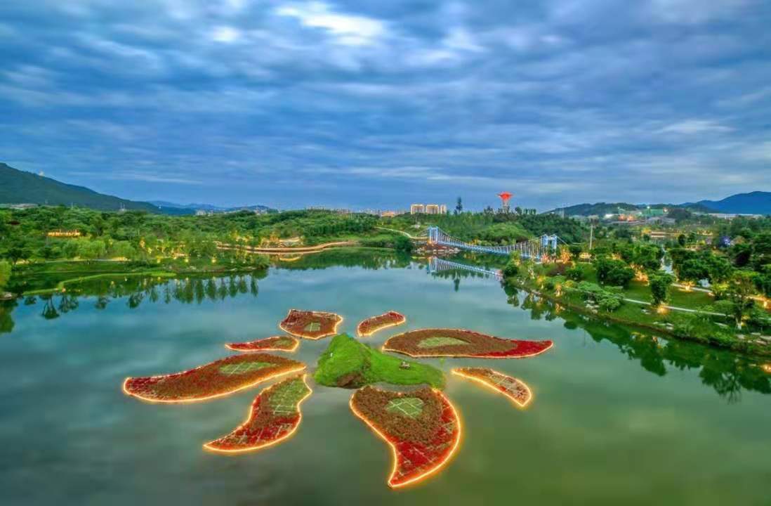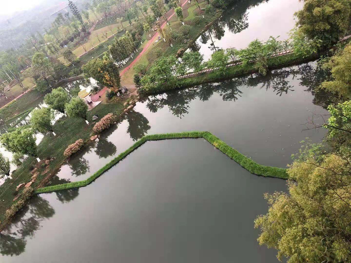 蓮花湖位于達州市通川區(qū)西北角,是由生態(tài)引領(lǐng)、全面貫徹海綿城市理念,集“生態(tài)、休閑、康養(yǎng)、文化”為一體的城市綜合濕地公園。結(jié)合水域湖灣較多,岸線豐富的特點,設(shè)計布設(shè)造型豐富各異的浮動濕地大小島嶼幾十余座,輔助凈化水質(zhì),改善蓮花湖水域水生態(tài)環(huán)境,豐富獨特的水景觀,為達州打造一張響亮的生態(tài)名片