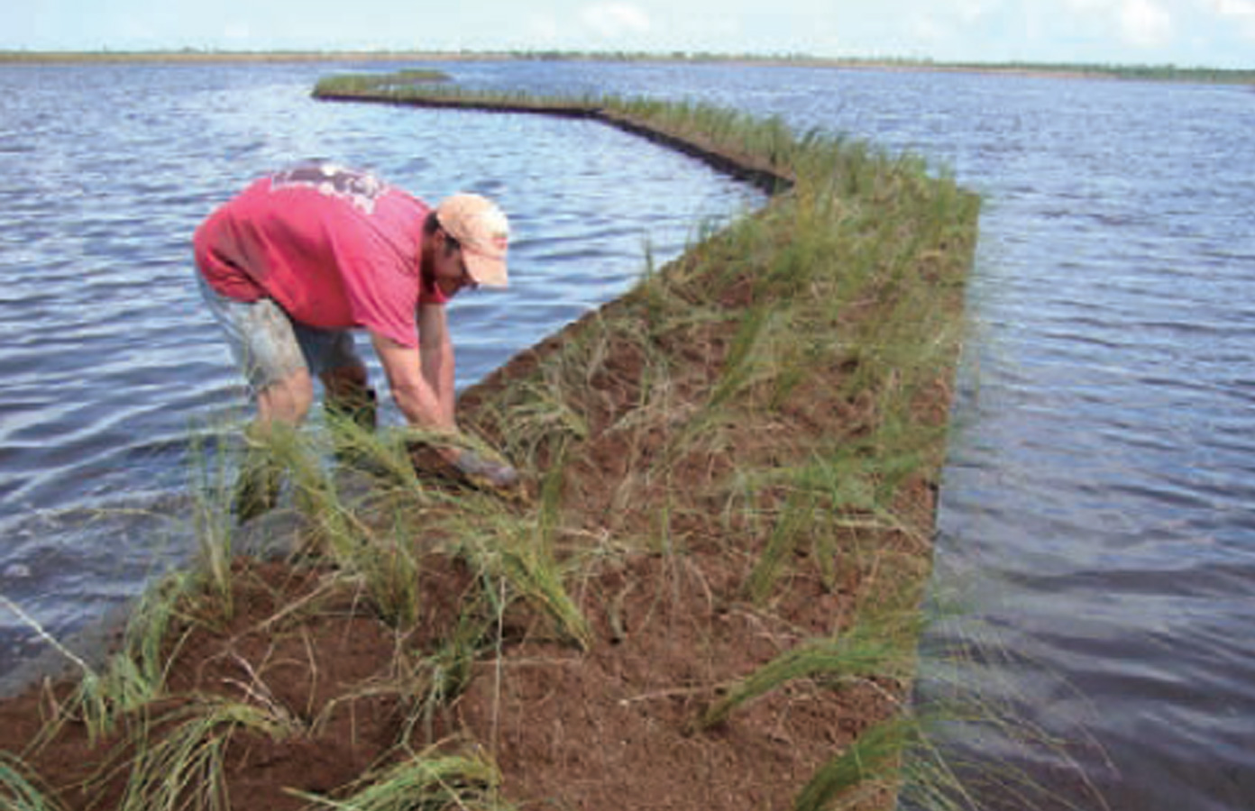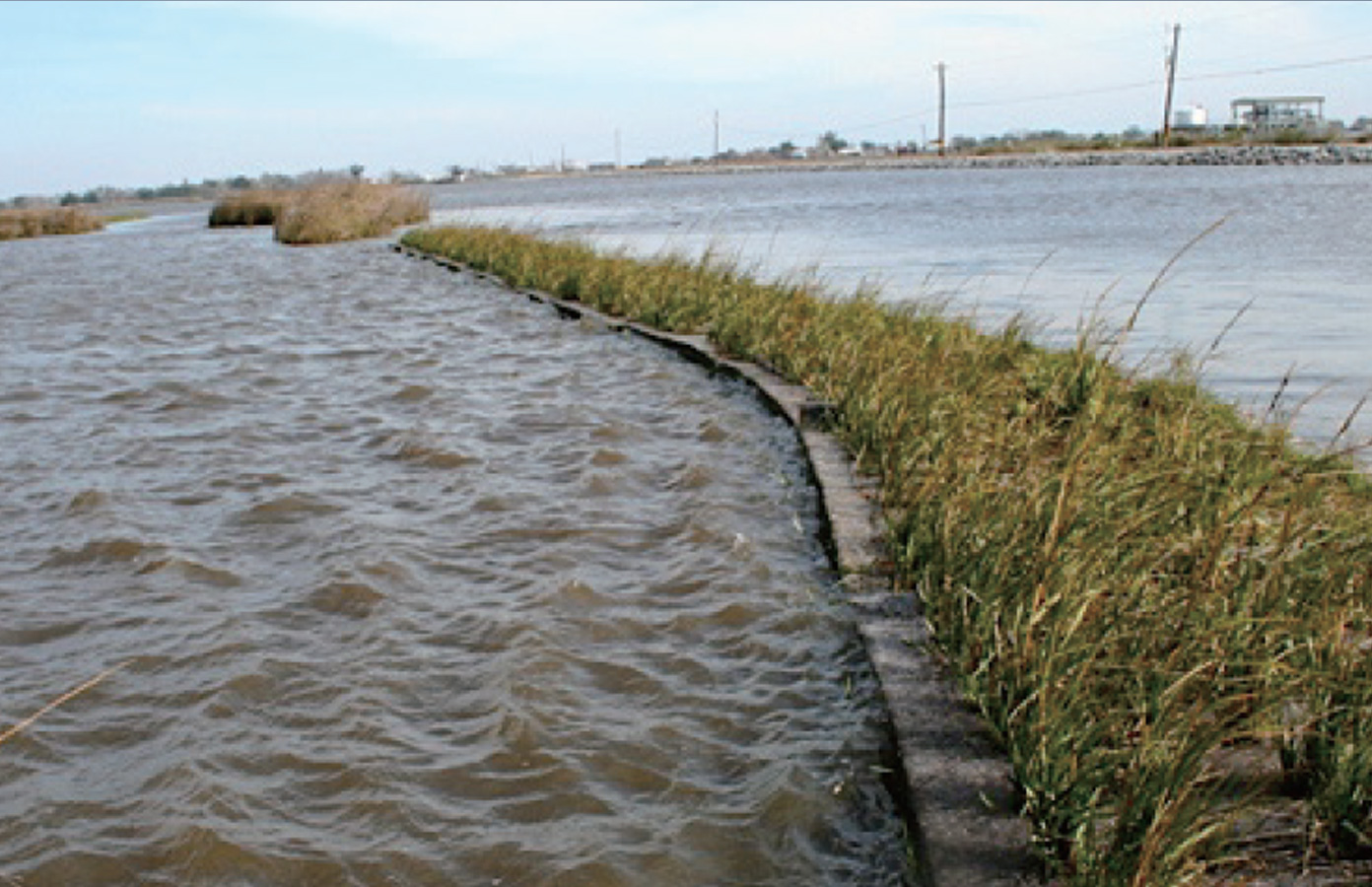 美國(guó)路易斯安娜州Golden Meadow密西西比河流域沿岸自然堤岸河流侵襲影響嚴(yán)重,土質(zhì)改變,原有植被在河水沖刷下毀壞、消失。項(xiàng)目沿岸布設(shè)百奧源®生態(tài)堤岸基質(zhì)材料平鋪布設(shè)于受侵襲的天然堤岸,選用植被為海濱雀稗(Seashore Paspalum)互花米草(Smooth Cord),少量移栽。項(xiàng)目每年簡(jiǎn)單人工維護(hù),并監(jiān)測(cè)河水侵蝕情況。項(xiàng)目布設(shè)后選中植被快速生長(zhǎng)覆蓋了護(hù)岸基質(zhì),并大量生長(zhǎng)。項(xiàng)目布設(shè)9個(gè)月后,植被生長(zhǎng)到3英寸左右,起到護(hù)岸緩沖的作用。植被成活量大,密集生長(zhǎng),固持土壤,緩沖波浪,大大減少對(duì)自然堤岸侵襲。