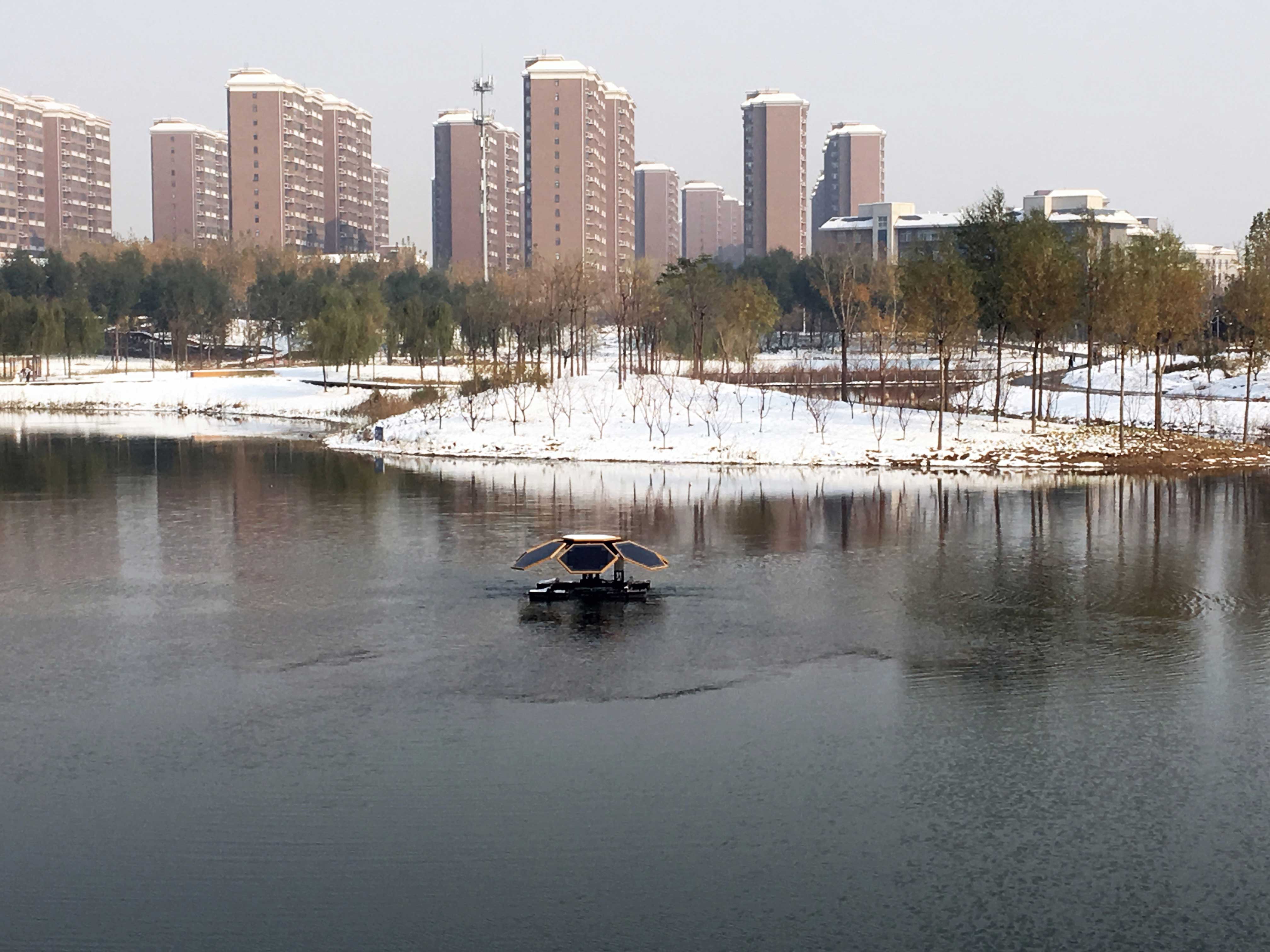 太陽能水循環(huán)復(fù)氧設(shè)備良好的冬季水體控冰功能,為魚類等水生動物在冬季生存提供充足的溶解氧,促進水生態(tài)系統(tǒng)安全越冬。